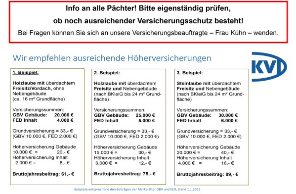Gleichzeitig können auch in dieser Zeit die Pächter, welche noch keine Versicherung haben, eine Versicherung für das nächste Gartenjahr abschließen.